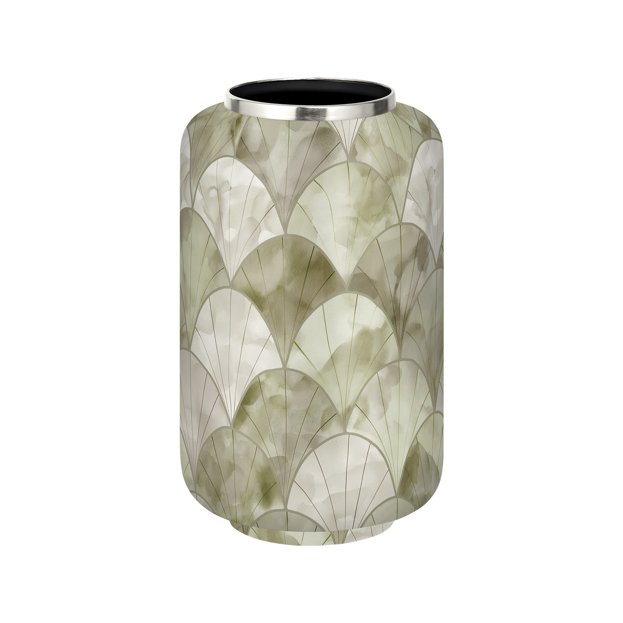 مزهرية بنقش مروحي مستوحى من فن ديكو بدرجات خضراء ناعمة — مزيج بين الكلاسيكي والعصري.